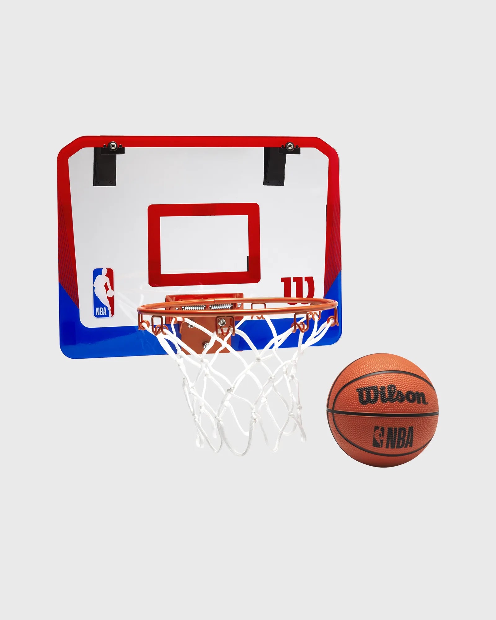 The NBA DRV MINI HOOP CLEAR from Wilson can be quickly and easily attached to most doors. The set includes a mini basket (37.5 cm x 30 cm) and a mini ball.